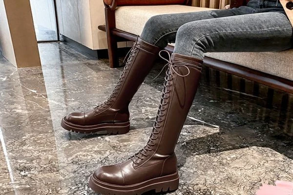 直接选择带有绑带的长筒靴。因为绑带的长筒靴,比较灵活,穿在腿长,可以根据自己的腿围尺寸,进行调节大小,绑带的时候,尽量绑的不要太紧,也不要太松。绑太紧膝盖会弯不下去,走路也会不方便;绑太松的话,走几步就会掉,所以要根据自身的情况来,绑适中就可以了。靴子筒围指的是高筒靴子的围度,一般是指小腿部分一圈的大小,精确的。