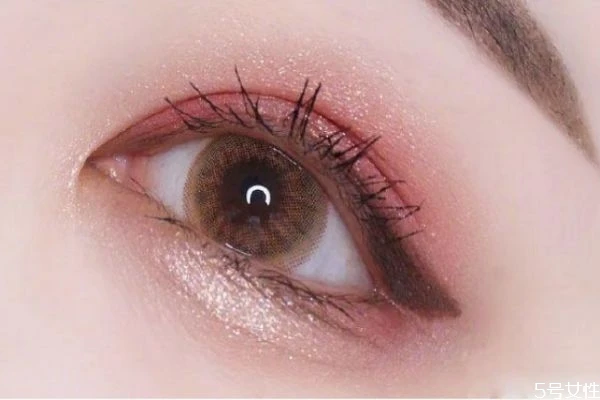 5、用眼影刷沾上深色眼影,轻轻扫在眼窝上,然后用高光眼影来提亮眼角;
