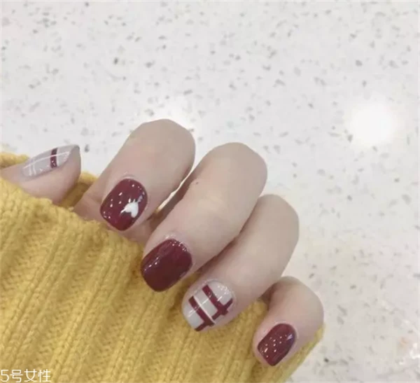 时尚酒红色美甲绝对是2018年流行款式,颜色大气的酒红色让人看起来很喜欢,配一点线条设计,真心抢眼。