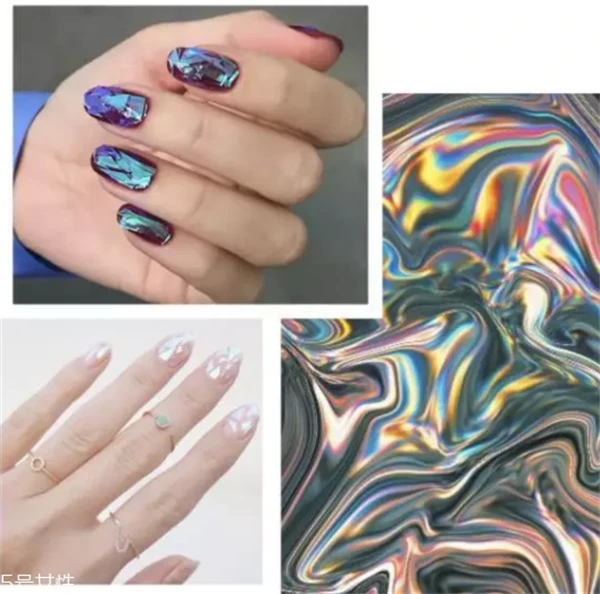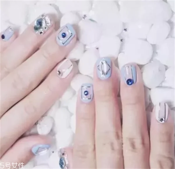 最近很流行玻璃渣!应该是种特别的贴纸,在阳光下显得超酷,有种未来感。手上做浅色,脚上做深色好看。