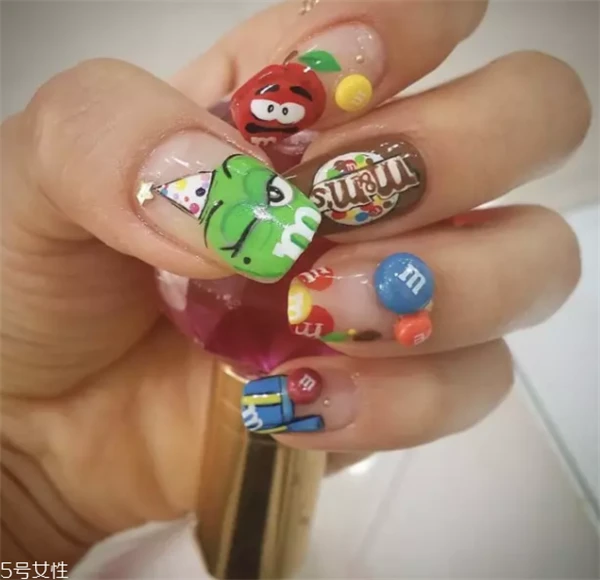这个mm豆也超可爱啊,还是立体的呢,就看美甲店有没有同款了。