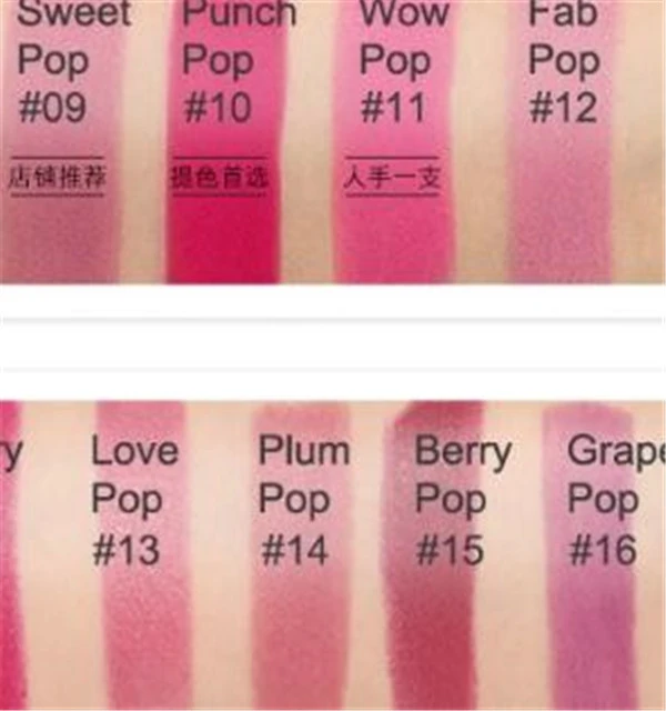 13号LovePop金属豆沙色,偏浆果色的颜色,多了一些缎光感,但是覆盖力没有8号高。这款倩碧小方撞色唇膏系列为6个色号,分别是从深红06一直淡至浅粉12,从图中可以看出这款唇膏的显色度都很好,涂抹在肌肤后显色色差小,与实物颜色相差不大。色泽水润亮泽,能够有效打造完美唇妆。