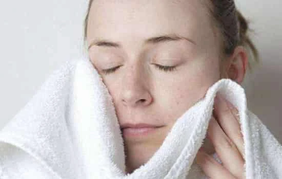 第四步:用湿润的毛巾在脸上轻轻按压几次就可以清除掉脸上的洗面奶;
