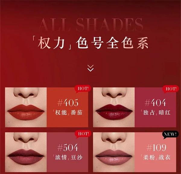 此系列革新色号由阿玛尼全球彩妆创意总监Linda Cantello 倾力打造,新色上市后,LIP POWER「权力」唇膏系列将涵盖 16 款标志性色调,加持女性极致之美。旨在呼吁女性随心追求多元妆容,释放自信强大、潇洒无畏的女性魅力。