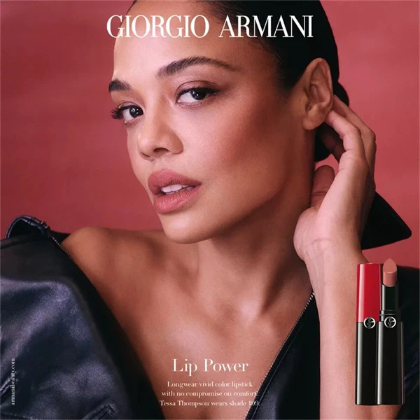阿玛尼美妆彩妆大使:美国演员泰莎·汤普森 (Tessa Thompson)、巴西名模瓦伦蒂娜·桑帕约 (Valentina Sampaio) 与意大利女演员格蕾塔·费罗 (Greta Ferro) 倾情演绎两部 LIP POWER「权力」唇膏系列宣传片,尽展果敢无畏、飒爽自信的多面女性魅力。