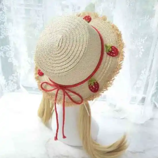 少女风草莓度假草帽
