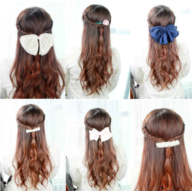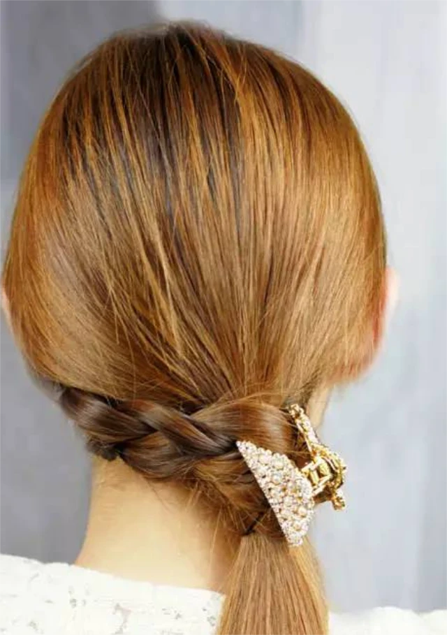 留出两边的发辫,将中间的头发绑起马尾,然后在盘成蓬松的发髻,用发卡收好发尾。发髻的位置不要太高,松松的垂下来会更有闲散的田园风情。