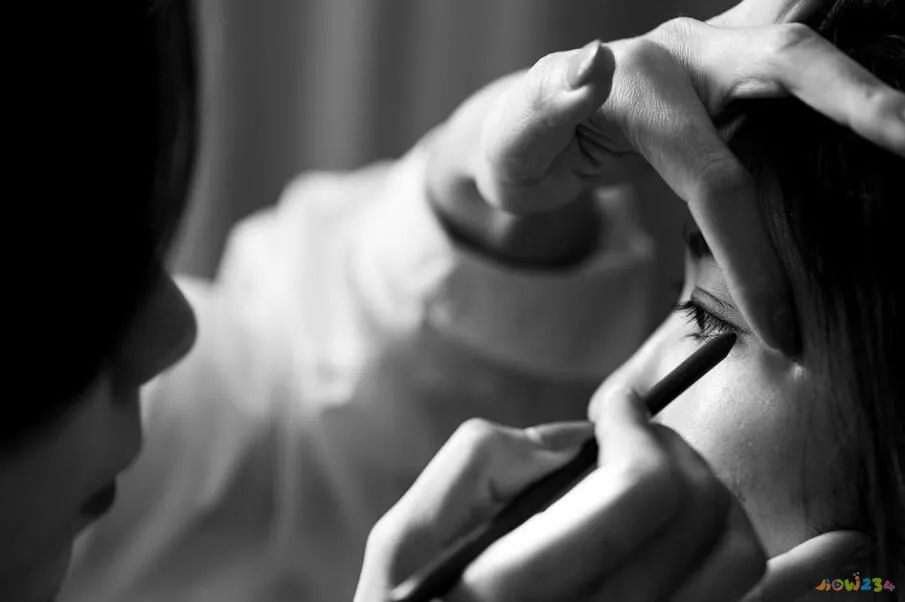 Step1 妹子们做好眼部打底之后,首先取一玫瑰棕色眼影,涂抹在双眼皮褶皱内的前1/3处。然后取一把干净的晕染刷,将眼影边缘处向上晕染自然。