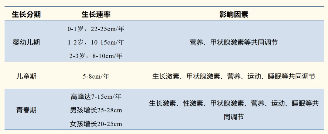 正常的生长是连续的,但不同年龄生长速率不同,生长高峰出现在因而其和青春期。婴幼儿期身高增长占全部生长总量的40%左右,儿童期占40%-45%左右,青春期占15%-20%,可见,每个生长时期对长高都很关键。