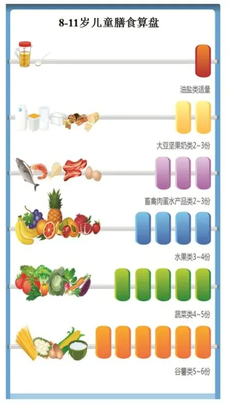家长为孩子安排饮食品类和结构时参照中国营养学会等权威机构发布的“饮食宝塔”,每日应吃谷薯类、果蔬类、肉蛋奶豆类、油脂类等四大类食物。食品品种多样化是获得全面营养的必备条件。