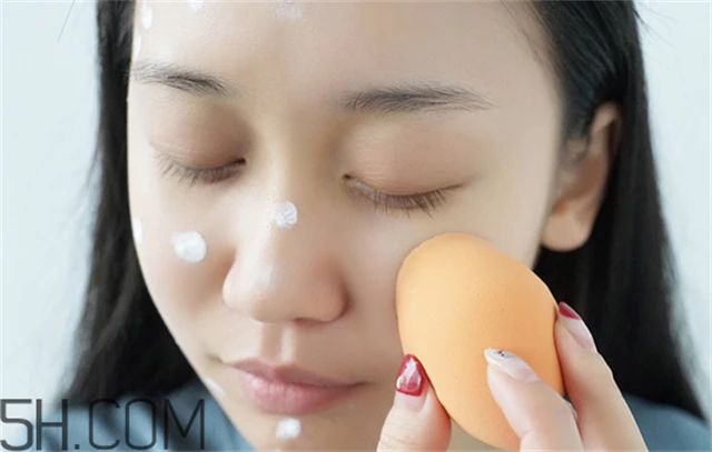 将CC霜点涂在脸上之后,再用海绵均匀轻拍晕开,脸部会感受到海绵表面湿湿的触感,非常清爽,也防止了肌肤干燥会带来难以上妆的尴尬情况。