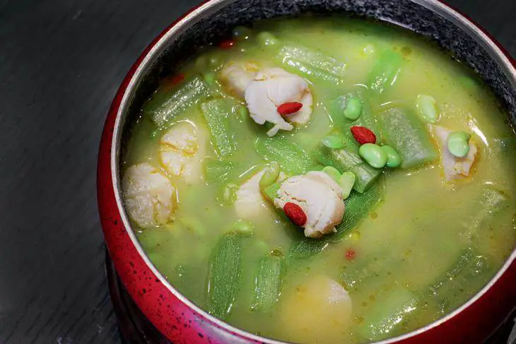 选用出自南海的黄皮带点老虎斑,鱼肉质更加弹滑紧实,晶润剔透。以花胶入汤,鱼骨汤底之中的胶原蛋白与花胶充分释放,既增加汤的浓厚又富含丰富的营养价值。每日鲜活空运而来的老虎斑,只为一抿肉细爽韧,一匙汤浓唯美。