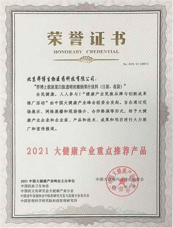 羿博士胶原蛋白肽透明质酸钠果汁饮品通过激烈竞争,荣获大健康产业峰会,重点推荐产品。相信很快,羿博士胶原蛋白肽透明质酸钠果汁饮品就会和广大消费者见面,相信大家会喜欢这种既好喝,又方便食用的新款饮料。羿博士作为国产品牌,也会全心为消费者服务,接受消费者的监督,用心做好产品,祝愿大家每一天都能年轻,健康的生活。