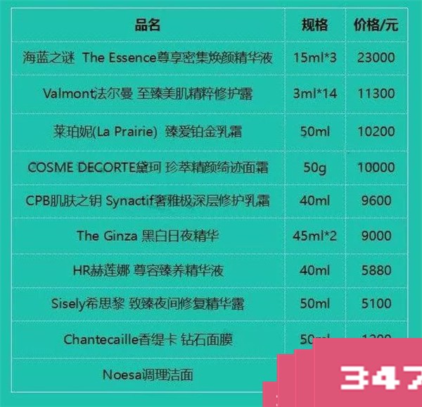 这个系列下,一瓶20ML的精华液价格直线高达10200元一瓶,最便宜的一瓶20ML的眼霜也要3650元。