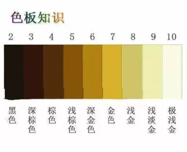 /号前边的数字代表染发颜色的深浅度,它作为头发深浅度的指标以达到最接近色板 基色的发色,也需通过它判断天然发色与目标色的差距。