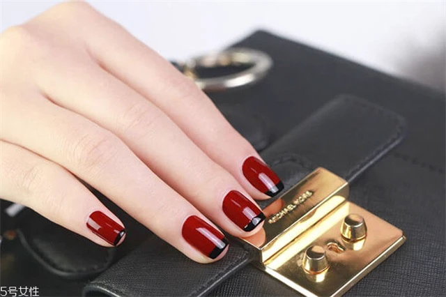 经典搭配美甲为亚洲女性挑选的时尚配色方案,在这个春天从指尖释放品味,神秘百搭的黑色搭配充满诱惑的暗红色指甲油,刚好展现出女人味,可以穿搭各种服饰,衬托出肤色白皙亮泽。