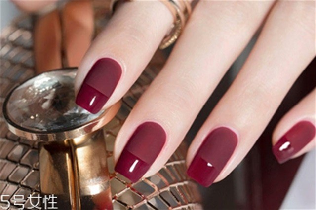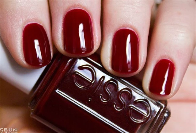 2、御姐风范:车厘子红。对于红色系的指甲油,很多人都会觉得很御姐,很艳丽,但在炎热的夏季如果想要涂抹红色系的指甲油,最好还是选择稍微暗淡一点的车厘子红颜色。