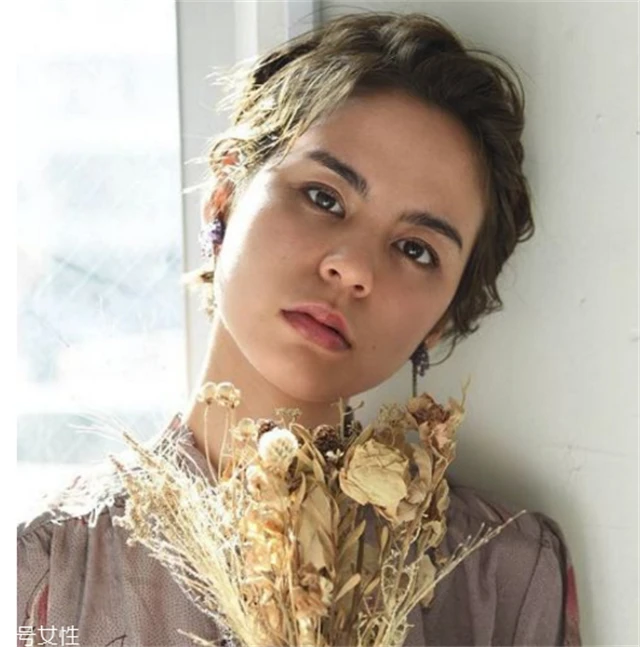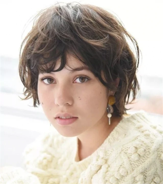 亚麻棕、摩卡棕等都是比较热门的染发流行色,偏分短卷发搭配,打造出率性的中性风。