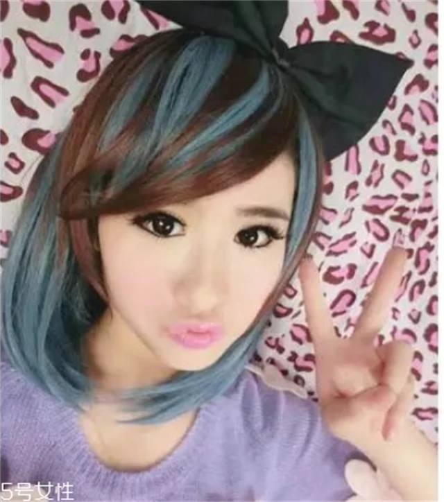 日系原宿风的染发,其实不管是搭配直发或者是卷发,都是有一种和谐感。闷青色短直发,飘逸更是街头风十足。