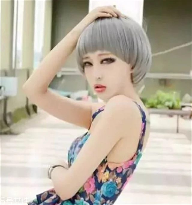 超帅气的一款波波头短发发型,银灰色的染发,配上魅惑的日系妆容,原宿风十足,时尚又显得十分个性。
