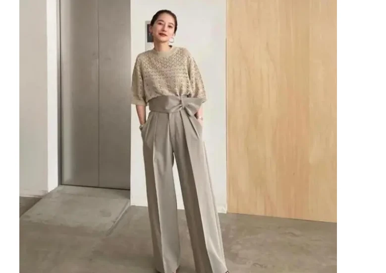 穿搭示范一:棱纹镂空针织衫+蝴蝶结西裤+绑带凉鞋这套穿搭是日本博主-松本惠奈的穿搭。一眼看过去就十分的高档大气,这套穿搭比较适合30-40岁的职场女性穿搭,简单大气的上衣具有独特的花纹设计,不会显得小气也不会显得浮夸。下身搭配蝴蝶结设计的西裤,蝴蝶结不能设计太过小,不然就会显得很低端小气。