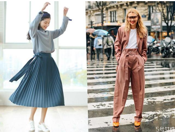 在拉大肩宽的同时,梨妹要注意避免有膨胀体质的下装,根据深色收敛与浅色膨胀的色彩原理,我们可以通过采用日系中的藏青色、黑色等深色系的下装,与白色、米色等浅色系的上装进行组合,弱化下半身的比重。