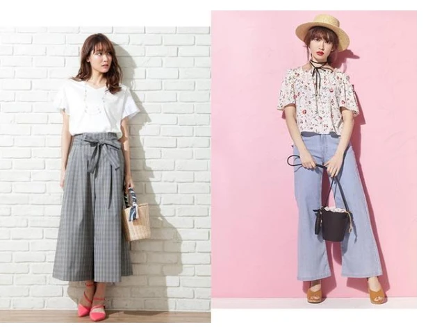 尽管裤装在日系风中出镜并不频繁,但适合梨姑娘搭配的还是存在的,同理用同样类型的裤装也能起到遮臀效果,这两年火爆的阔腿裤就是其中一类,用黑白灰蓝驼的日系基础色舒服又耐搭。