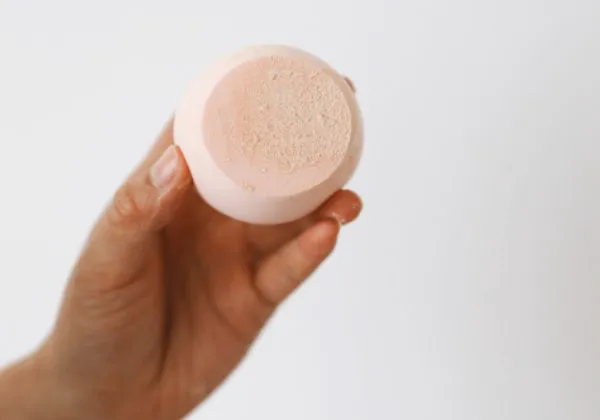 第二步 浸湿后,将美妆蛋中的水捏到半干,再挤上专用清洁剂或者洗面奶,然后在手心中轻轻挤压。