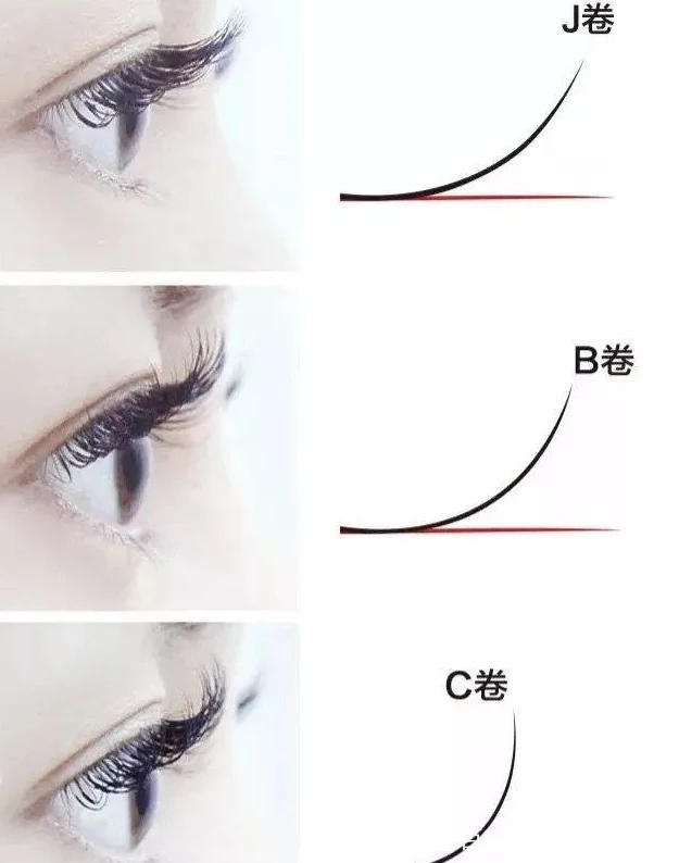 睫毛的型号主要分三种,J、B和C。
