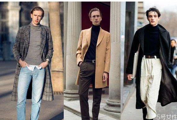 黑色也是男性职场穿搭中比较常见的配色,全身黑色配色会更显严肃,不过略显老气。当选用浅驼色高领毛衣作为内搭,增加了几分活泼感。鞋子选用厚底的系带皮鞋也会更加减龄。