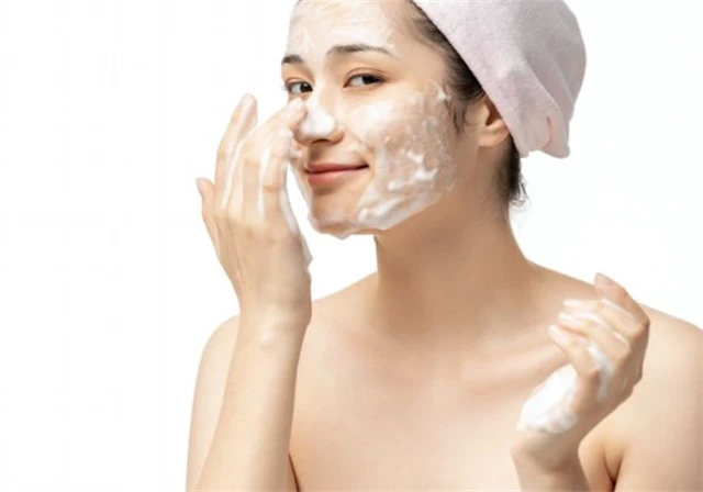 第一步 选择适合自己肤质的洗面奶,在卸妆后仔细清洁脸部肌肤,防止油脂污垢阻碍后续护肤品的吸收。