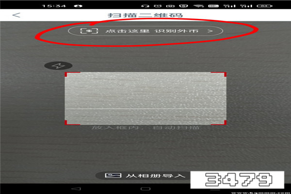 2、打开银行app,点击扫一扫,在扫一扫界面的顶端有一个识别外币的提示,点击进入。