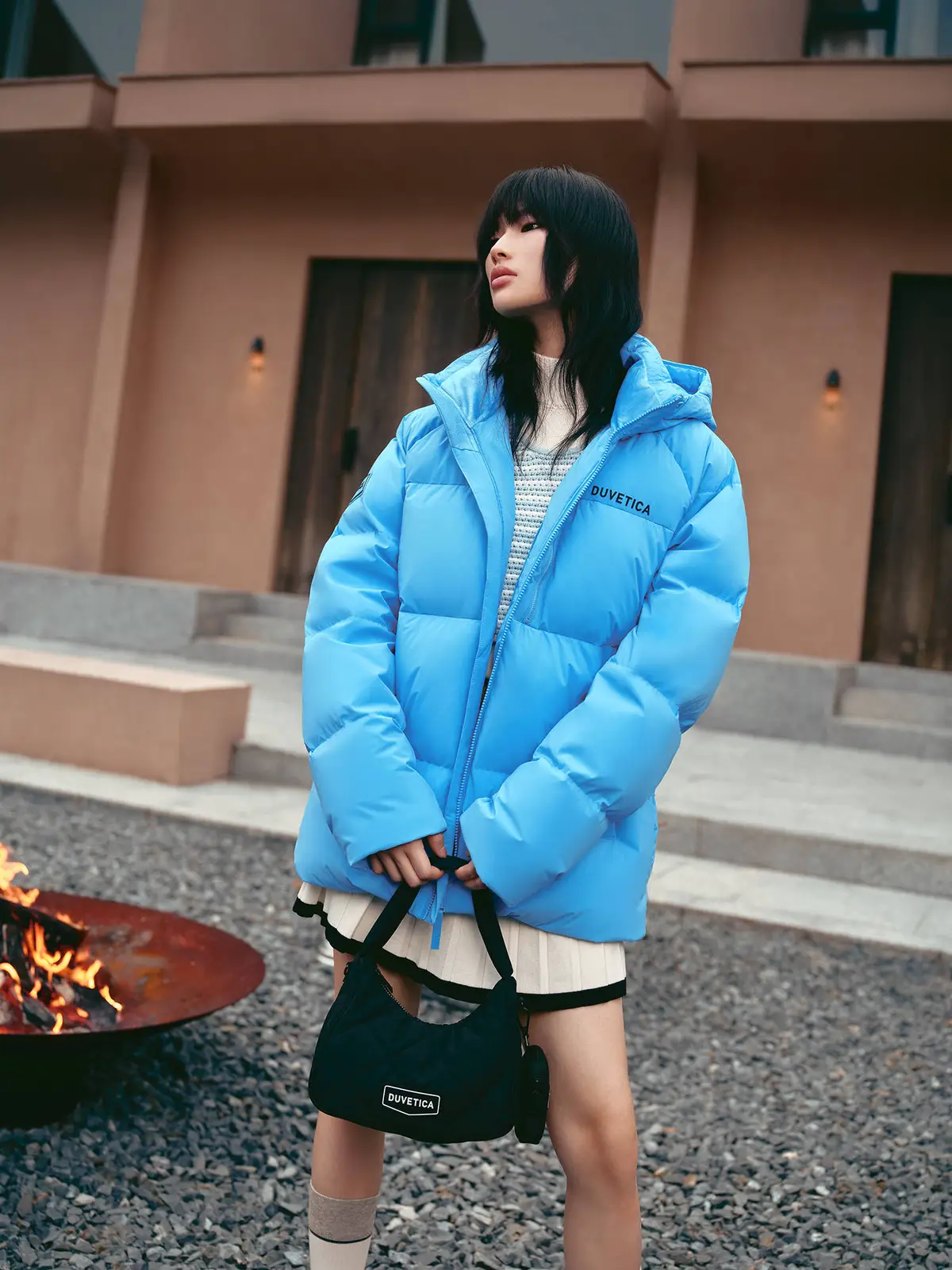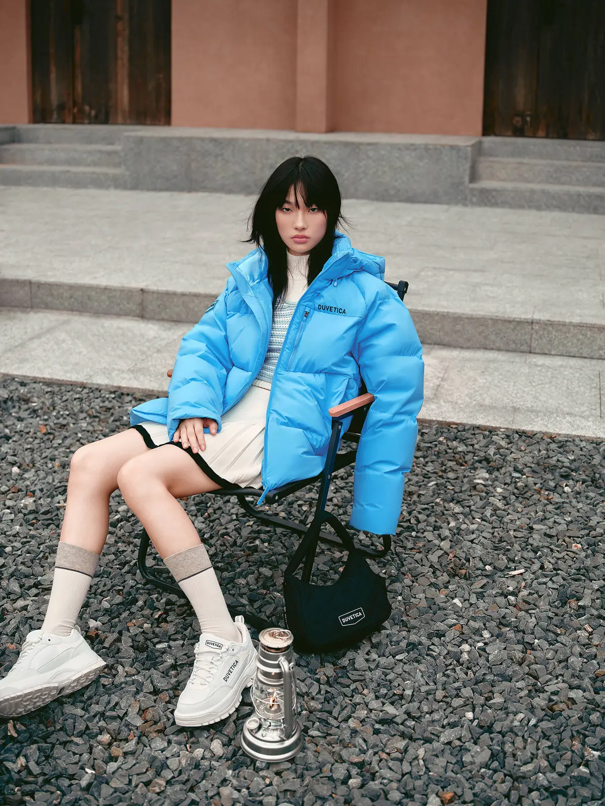 DUVETICA鹅绒短款羽绒服内里选用优质的欧洲鹅绒,外部采用高密度的弹力材料搭配连帽,有效锁温,提供冬季保暖效果,助力穿着者畅享冬日户外或城市活动。吸睛的冰川蓝与静谧紫的色彩设计与简单利落的绗缝设计,在城市之中再现山海壮丽之色,尽显闲适摩登的户外雅趣。