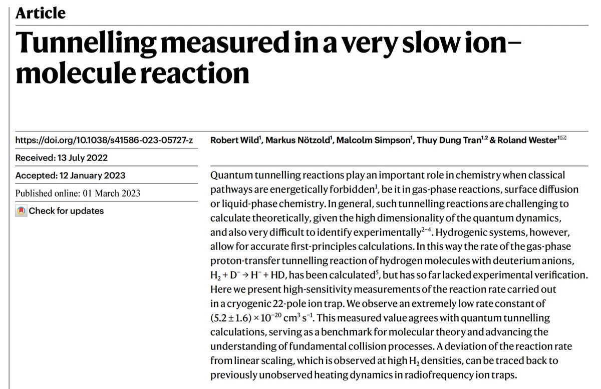 然而就在不久之前,位于奥地利的因斯布鲁克大学的物理学家首次在化学反应实验中观察到了这种量子隧穿的效应。