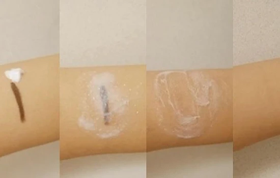 这款洁面除了日常清洁,还能卸除底妆。为了检验它的卸妆能力,我们用它直接挑战彩妆。先将眼线笔画在手臂上,把黄豆大小的洗面奶在眼线处均匀涂抹,加水揉搓,用清水洗掉。眼线笔仅剩一道浅浅的痕迹,说明它的清洁和卸妆力还不错,卸除日常的防晒和底妆是没问题的。