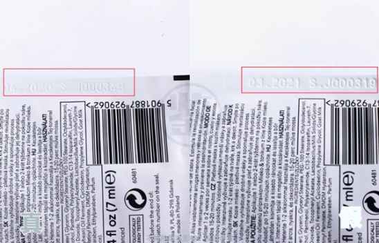 正品面膜的钢印要纤细一点,假货的则会粗糙一点。