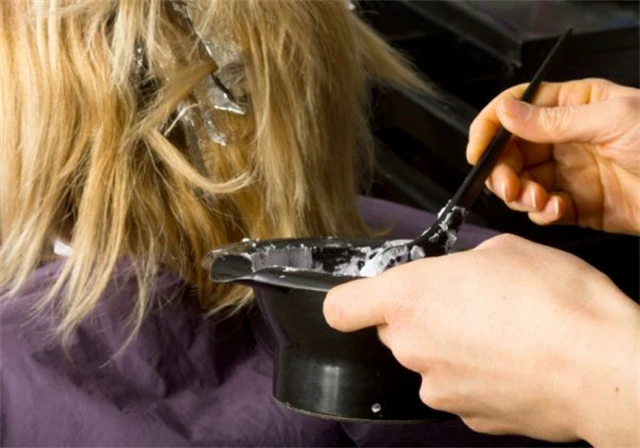 第二步 十几分钟后用黄色的染发剂涂抹头发的下半部分。