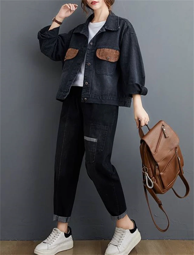 5、黑色牛仔外套+黑色九分牛仔裤。黑色牛仔外套穿出来是很帅气的,内搭一件白色字母T恤,下身再搭配一条黑色九分牛仔裤,再配上一双运动鞋,时尚、帅气又很显身材。
