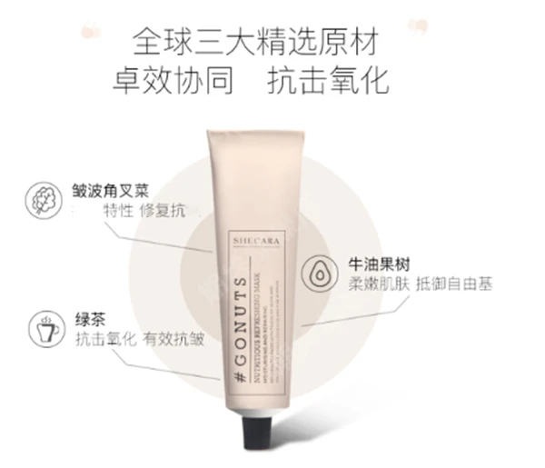 shecare坚果面膜清洁提亮二合一用起来真的太省事了,这面膜也太会给干皮解渴了,上妆服帖10倍,还有超棒的一点,洗完鼻子上的黑头也搞没了。质地也是我巨中意的像淡黄色冰淇淋,里面还有细微的坚果颗粒,轻轻一抹就推开了,敷上去也没有黏腻感,本人通过跨境电商购买,一次入坑之后就出不来了。