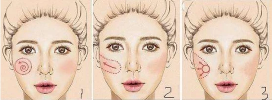腮红一定要打,提气色,玫瑰色为主,淡淡的一扫而过。乍一看看不出打了腮红,仿佛是肌肤自然的白里透红。