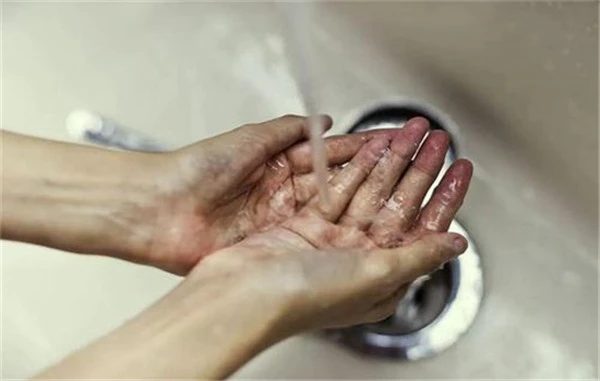 清洁是护肤的第一步,首先取适量的洗手液均匀涂抹手部肌肤,轻轻搓揉再用清水冲洗干净,然后再涂抹适量的去角质乳液,双手互相揉搓,让手部的老废角质完全脱落。