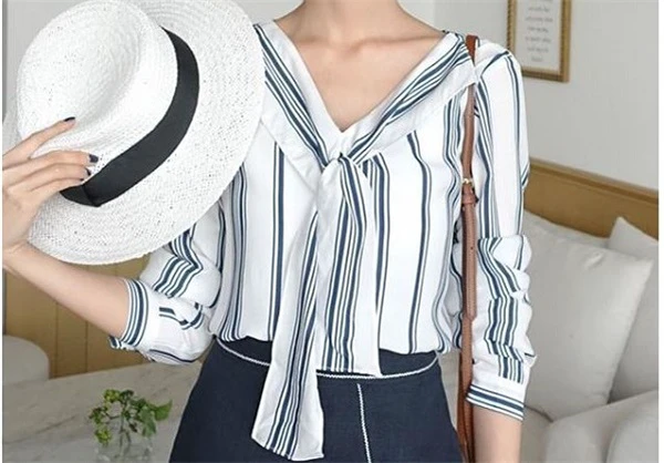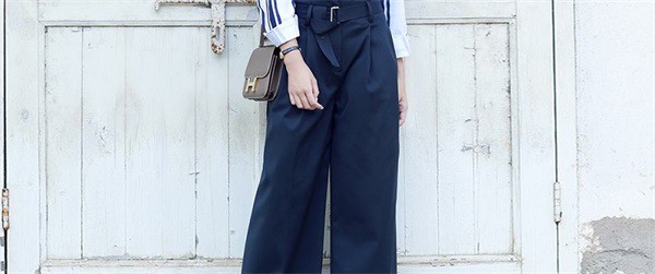 无论是春装、秋装还是夏装,没有衬衫搭不了的衣物,衬衫就是一个百搭单品。用小v立领的条纹衬衫搭配一条高腰的阔脱裤,干练帅气又有气场。