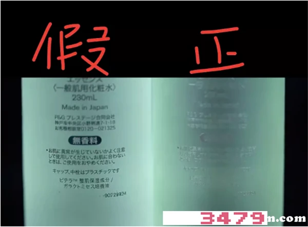 正品神仙水瓶身的字体颜色很浅,但看起来会很清洗,而假货的字体比较黑。
