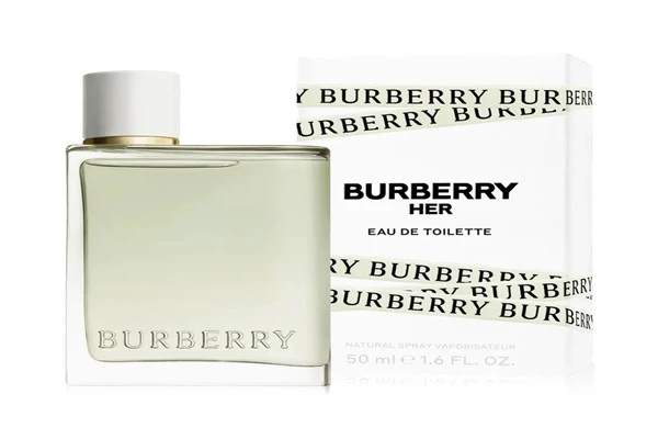 Burberry Her Eau de Toilette选用了与其前辈相同的瓶子外形,透明的瓶子内部装的是浅绿色的香水。该香水有 100ml、50ml、30ml,以及滚珠。