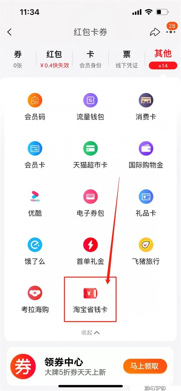 5、在【其他】页面找到【淘宝省钱卡】,点击进入;