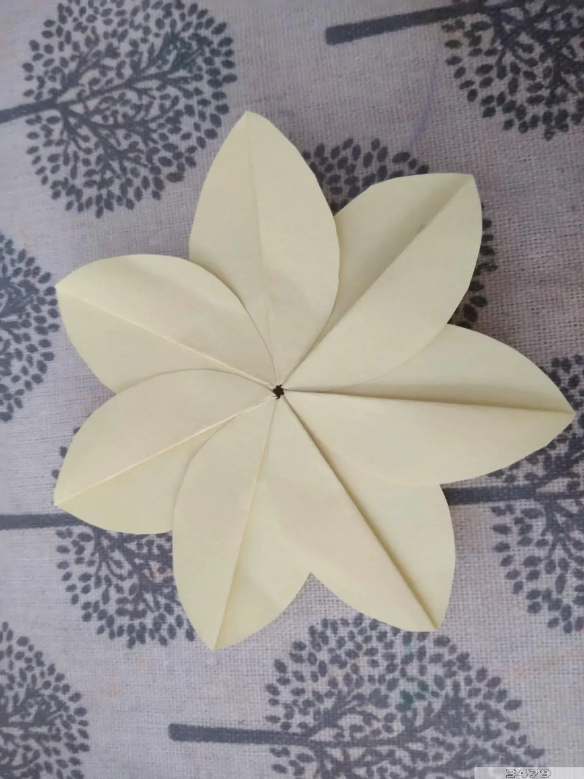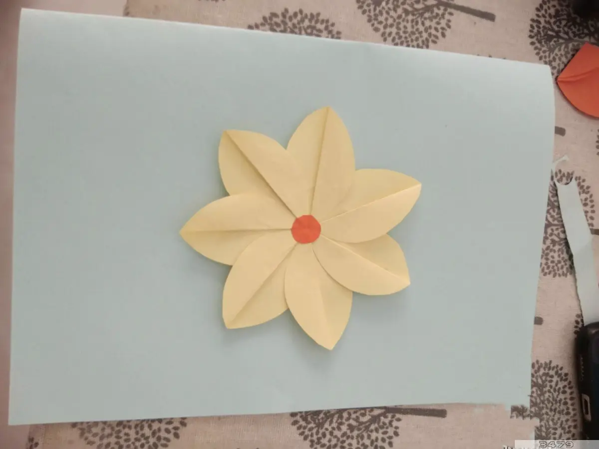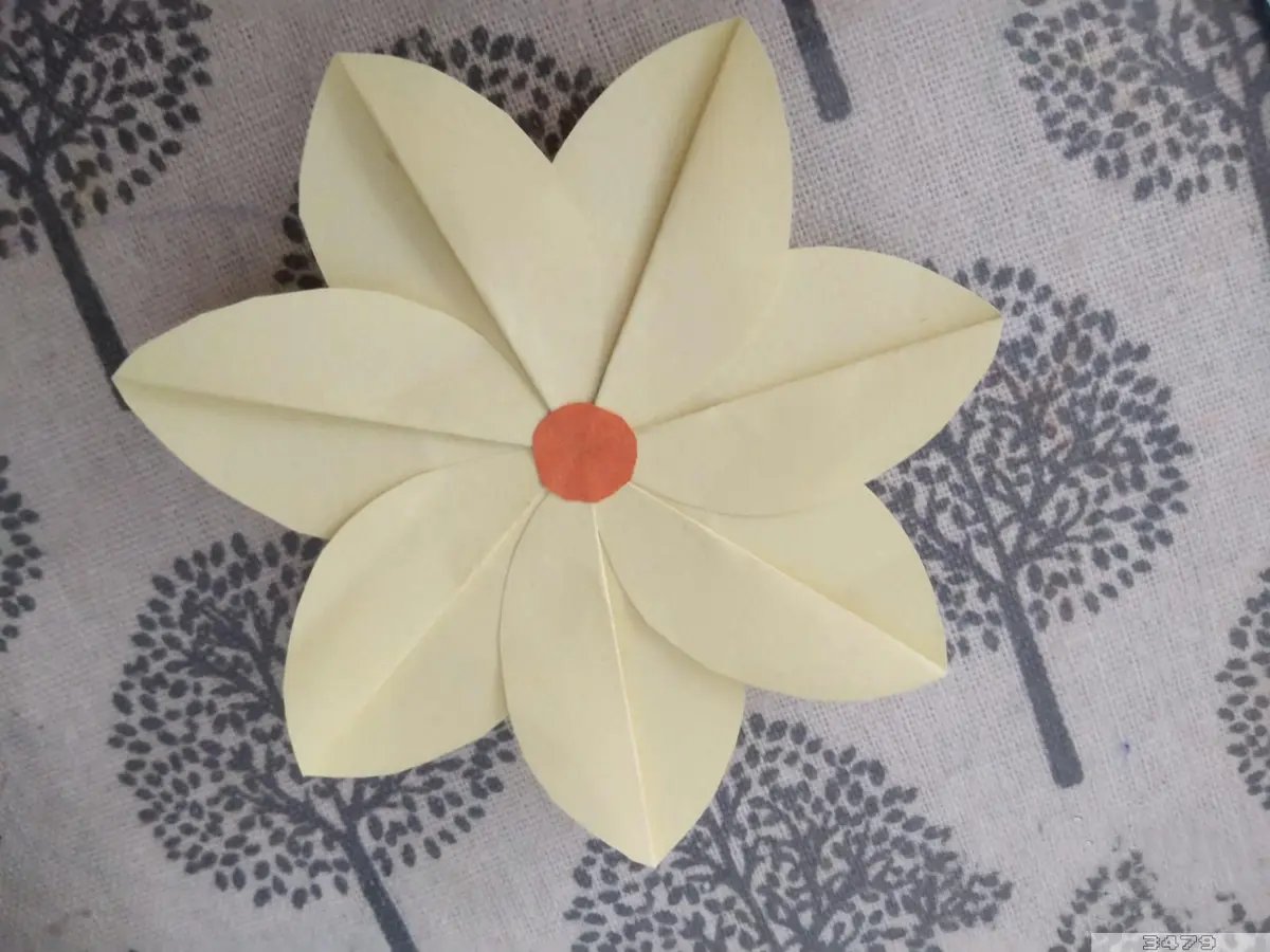 将七个花瓣全部粘合在一起以后,就围成一个圆形的花朵了