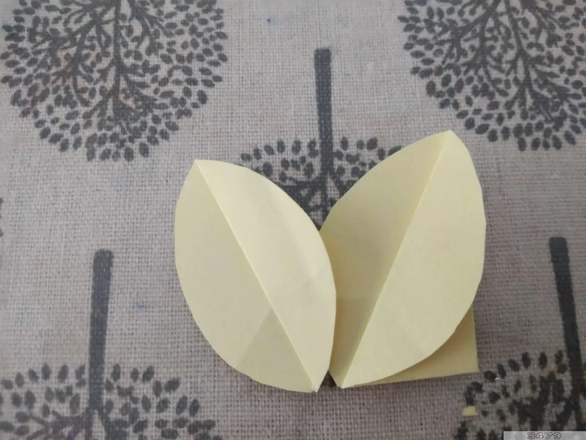 将其翻过来,两边折过来,一边变成一个花瓣的形式