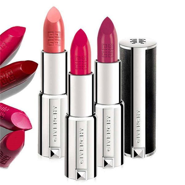 5.纪梵希(Givenchy):唇膏管身由黑色压纹小羊皮包裹,手感和视觉感强烈,银质金属、管身简洁利落,高质感、浓厚色彩张力、半哑光,高效保湿、丰润滋养、轻盈持久。比如纪梵希小羊皮。