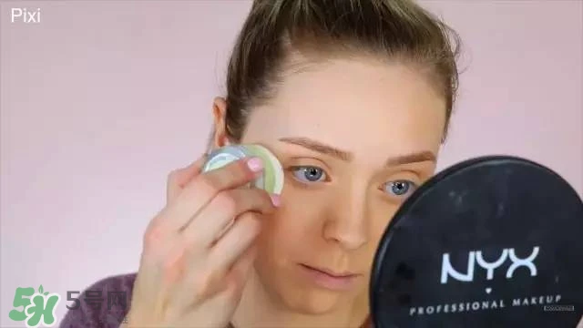 在我的左脸(图左),我想用Pixi的散粉做baking,再用同系列粉饼全脸定妆。