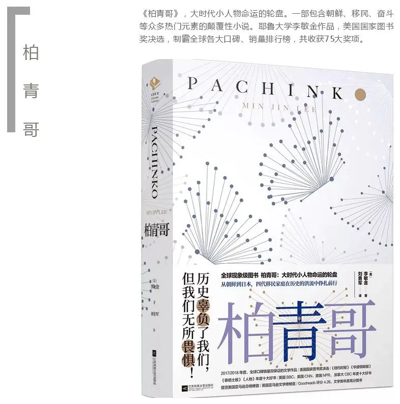 在作者李敏金看来,“各式各样的人物表面之下都潜藏着无数私欲、希望与苦难,只要我们有耐心和同情心去观看和倾听。”她深厚的文化积淀和广博的历史知识,加上细腻优美的文笔,令整部小说呈现出极强的立体感和画面感。《柏青哥》也因此被评为2018年度全球现象级图书,共收获75个各类奖项,制霸全球口碑销量双榜,入选纽约时报、华盛顿邮报、英国BBC、美国CNN、加拿大CBC等等的年度十大好书。